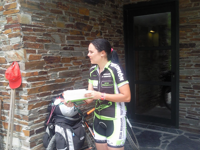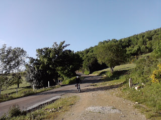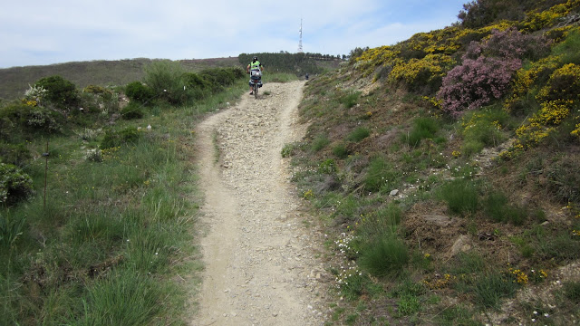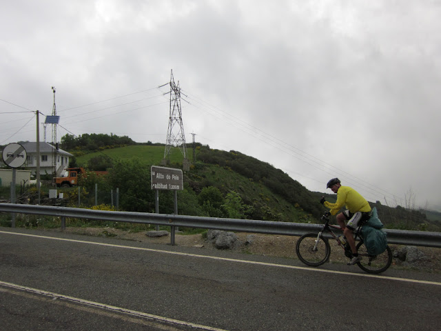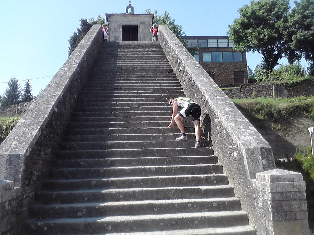 A esta altura del día, ya cansados, nos equivocamos de camino y recorrimos como 10 km o más rumbo a ningún lado, por una carretera cuesta abajo nada transitada, donde cogimos más de 50 km/h; una señora nos hizo el alto en su coche, nos alertó de nuestro error, y, ....vuelta a subir...!!.Ahora nos quedaba recorrer estos km cuesta arriba, y la subida al Alto do Poio, puesto que nuestra nueva meta iba a ser Fonfria.