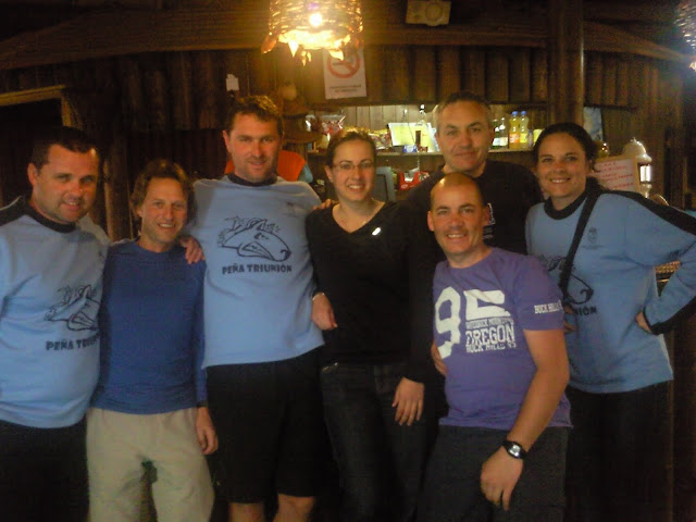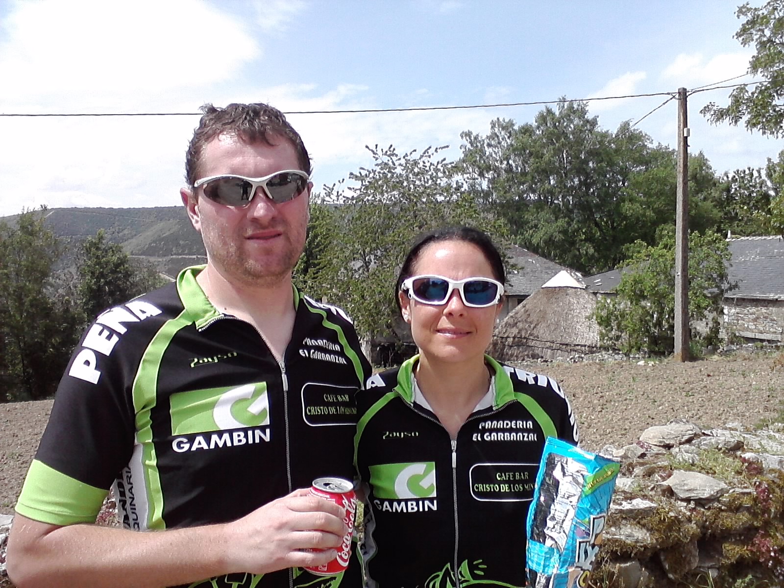 Foto con los maños del momento chupito, celebrando el "pasado por agua" ascenso al Alto do Poio!!..
