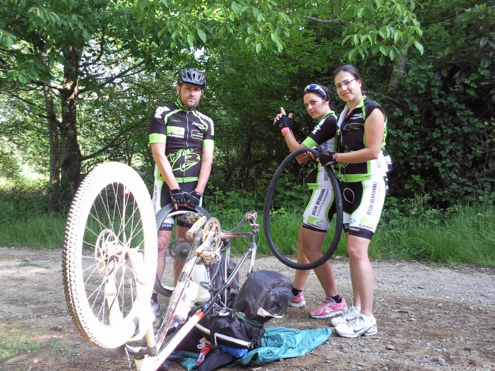 A la altura de Santa Irene, la bici del Tito se pinchó, así que nos pusimos manos a la obra..