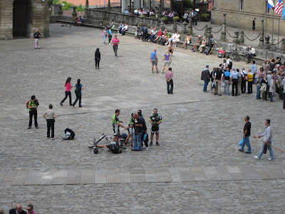 Saludando a los maños, que estaban en lo alto de la Catedral..