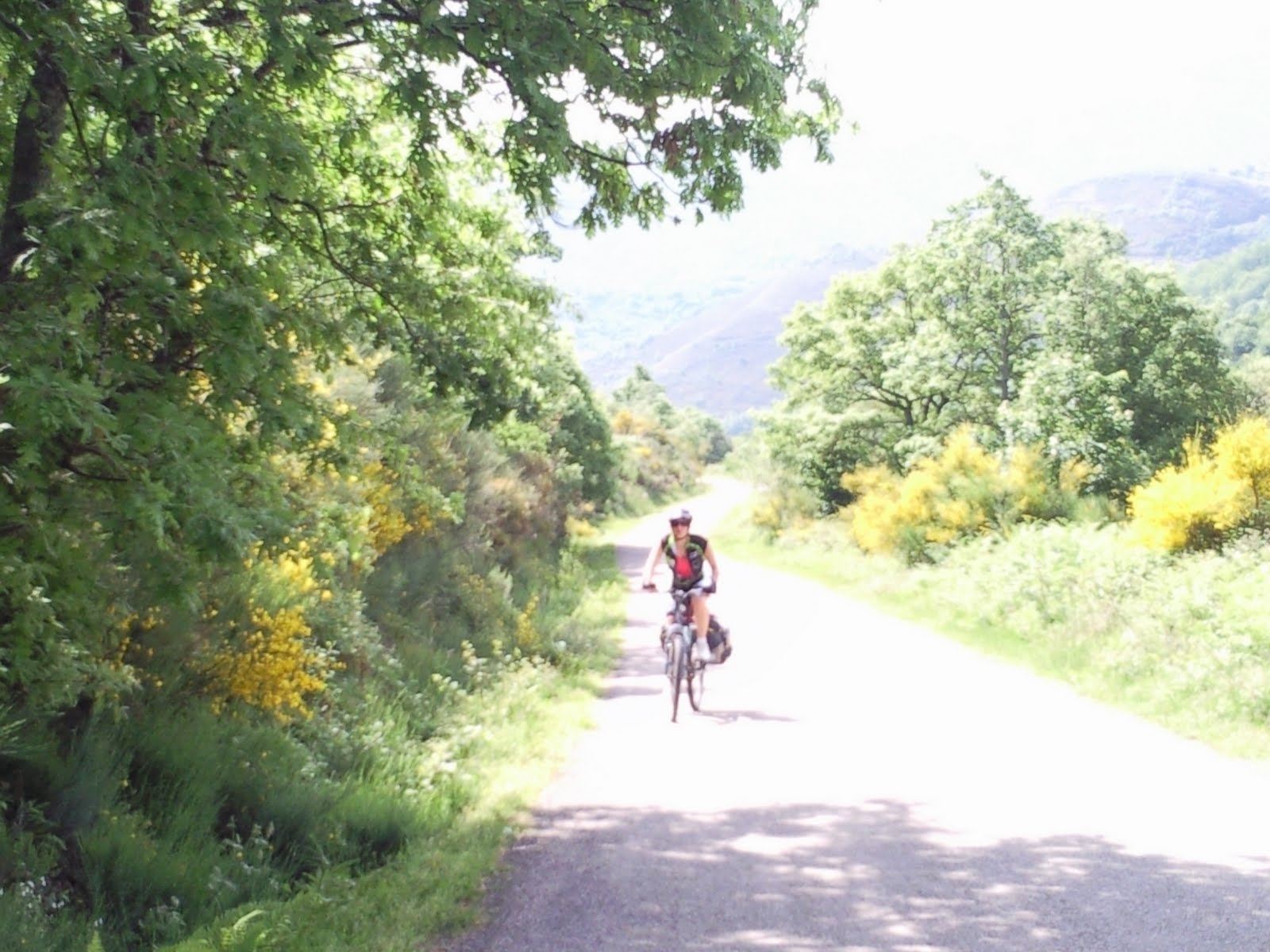 A este hombre le pasó de tó, los "ruscos" del camino saltaban cuando lo veían y se abalanzaban hacia él, y porque no se aprecia en la foto, pero doy fé de que llevaba en la pierna un huevo como el puño..