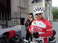 Llegados a este punto, el portaequipajes de El Tito, se partió definitivamente; hicimos un nuevo apaño, que ni MacGyver... y aguantó hasta Sarriá, donde tuvo que comprar otro, y así aprovechamos todos para poner a punto las bicis en el taller..