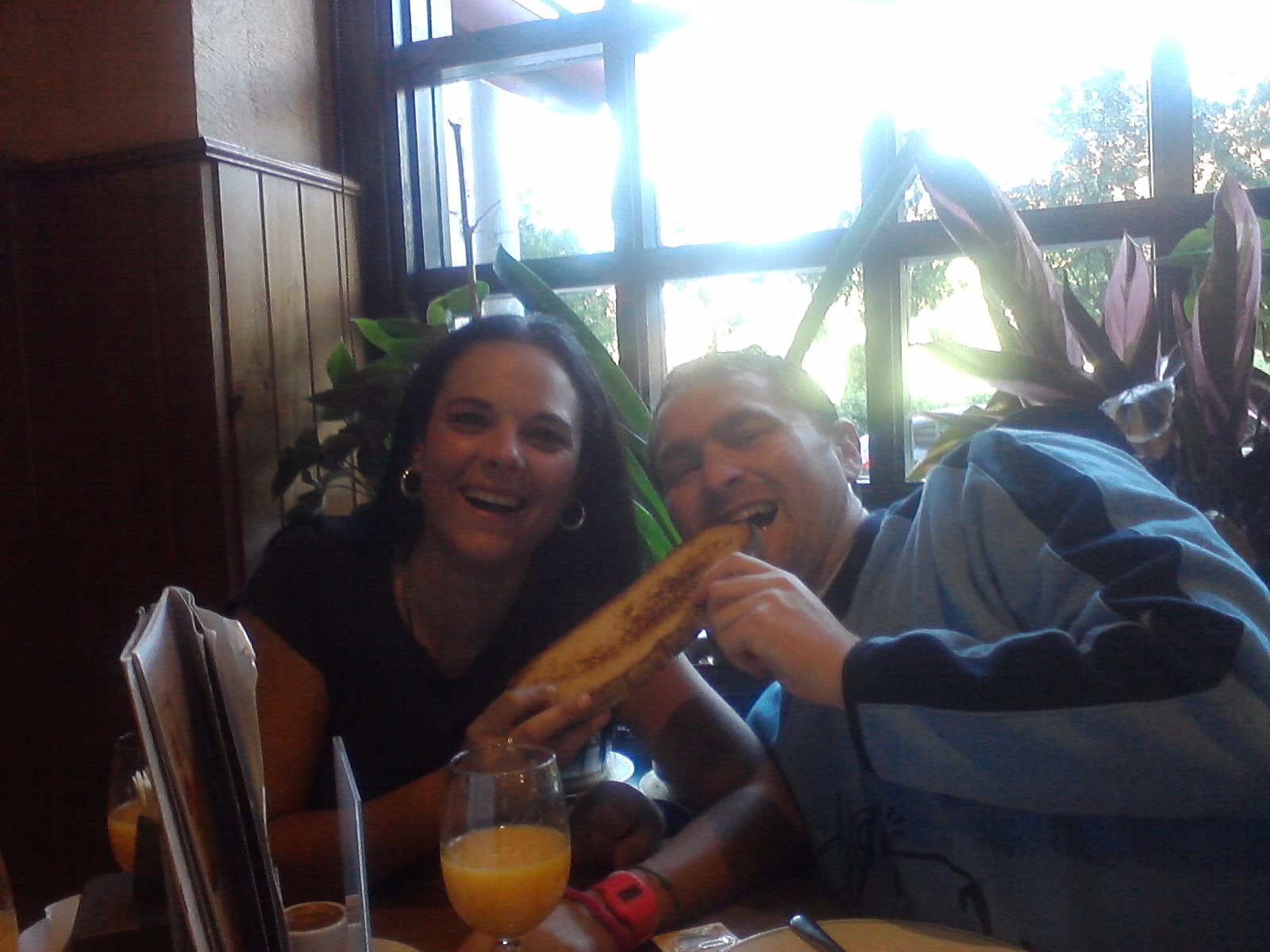 Cuando estábamos comiendo, a través del cristal del restaurante, vimos aparecer a nuestros colegas maños; fuimos a saludarlos, y nos hicieron esta foto..