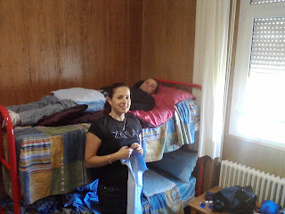 Esto es una palloza; normalmente estas construcciones suelen usarse como viviendas, pero en este caso es un local de celebraciones que tienen habilitado como albergue con literas, donde durmieron nuestros colegas maños...