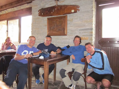 Foto con los maños del momento chupito, celebrando el "pasado por agua" ascenso al Alto do Poio!!..