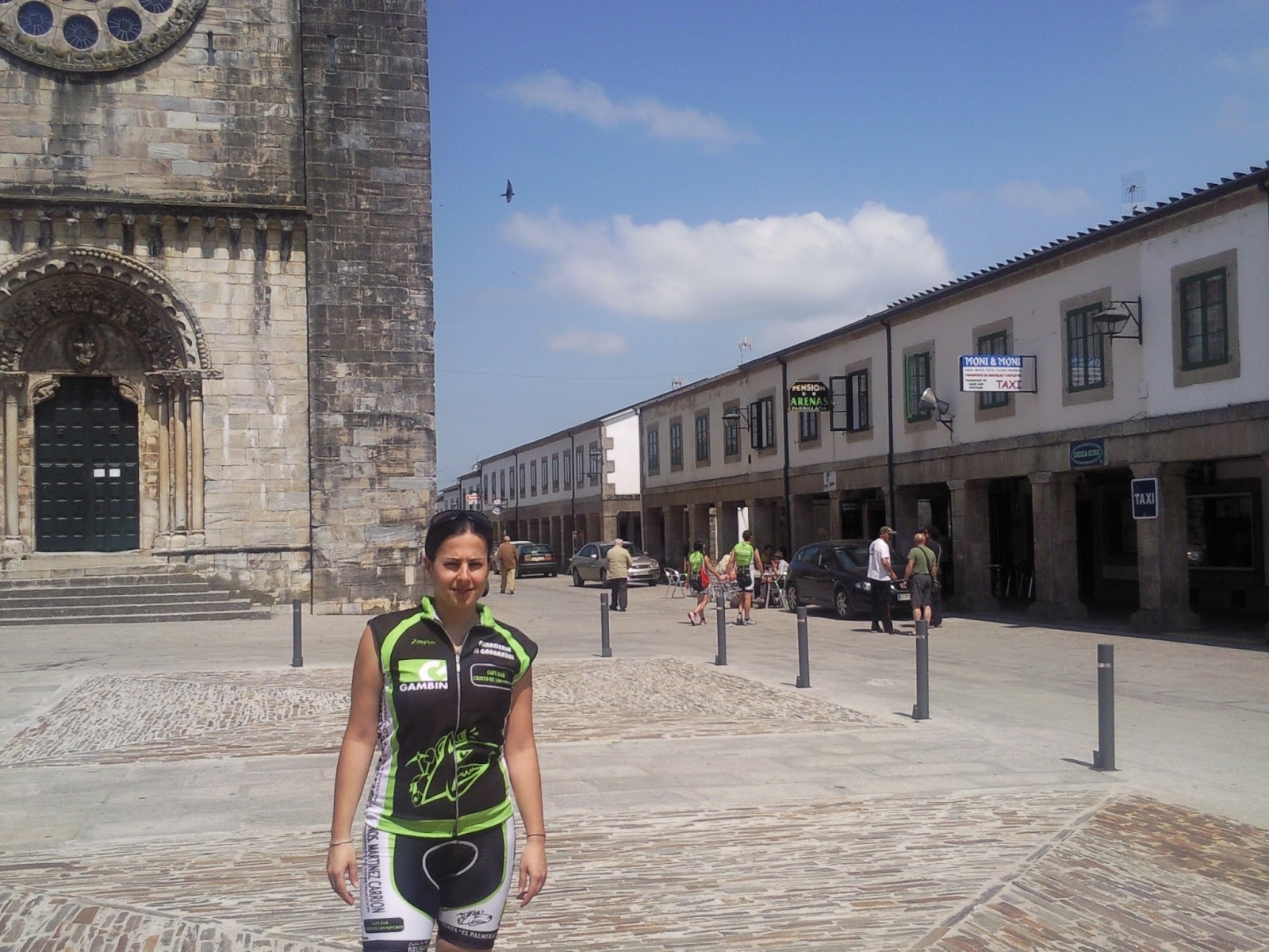 Con el uruguallo y su acompañante, minutos antes de comernos en Melide una de pulpos a la Gallega y un vino..