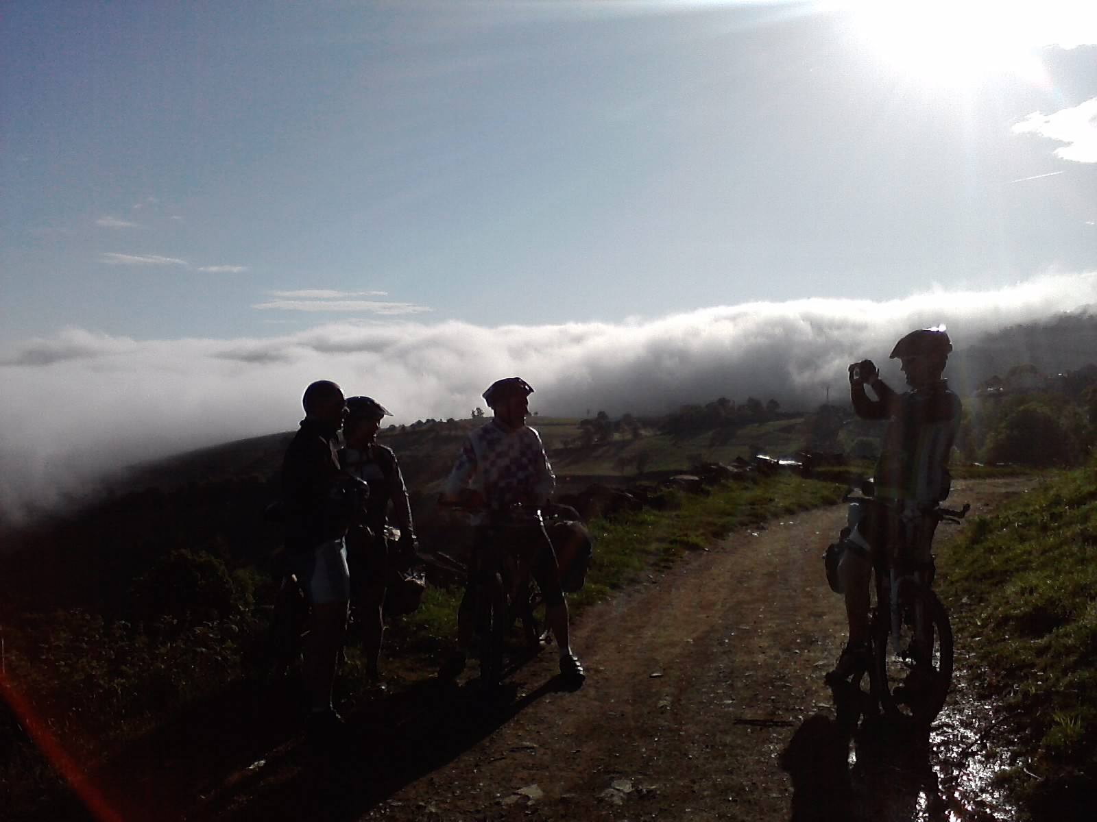 Hicimos la subida al O Cebreiro por carretera, porque nos habían dicho que la parte de camino estaba muy mala, y había que empujar demasiado la bici. Aún así, hubo que ir casi todo el rato a molinillo. Según nuestros cálculos son unos 8 km de subida continua, y parece ser que tiene un desnivel de 700 mt. pero málos hay como 5 o 6 km...se puede hacer...