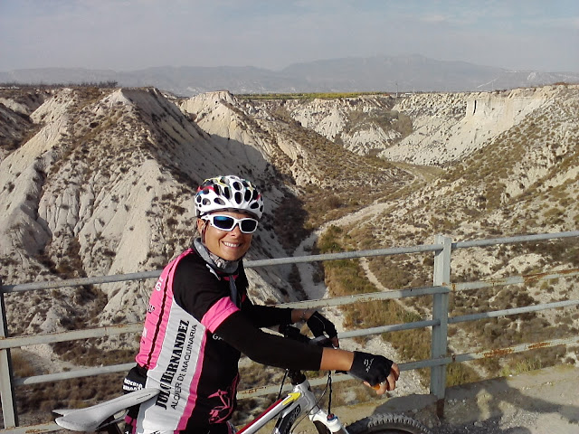 Durante el camino, encontramos zonas realmente secas con campos de tierra blanca, laderas repletas de pinares, y también atravesamos fincas con campos de cultivo de almendro y otros arboles frutales, como por ej,..naranjos, ;) ....como veis, un paisaje variado...