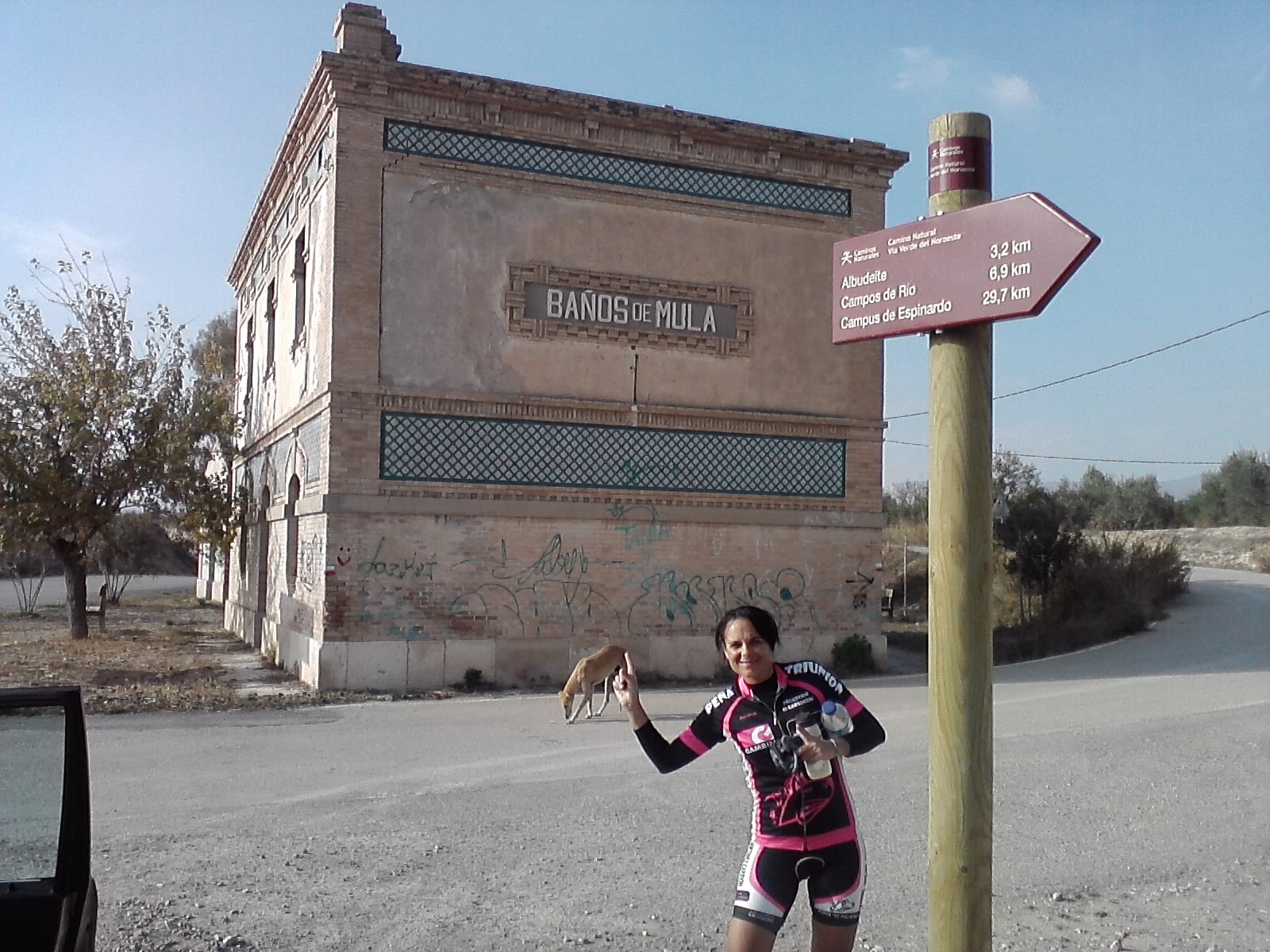 Dejamos los coches en un área de descanso que se ha creado al pié de las ruinas del antiguo apeadero en los Baños de Mula, y arrancamos una ruta en la que el paisaje es realmente bonito, y donde a lo largo de casi todo el trayecto, se respira paz y tranquilidad, exceptuando claro, los tramos en los que se atraviesan núcleos urbanos.